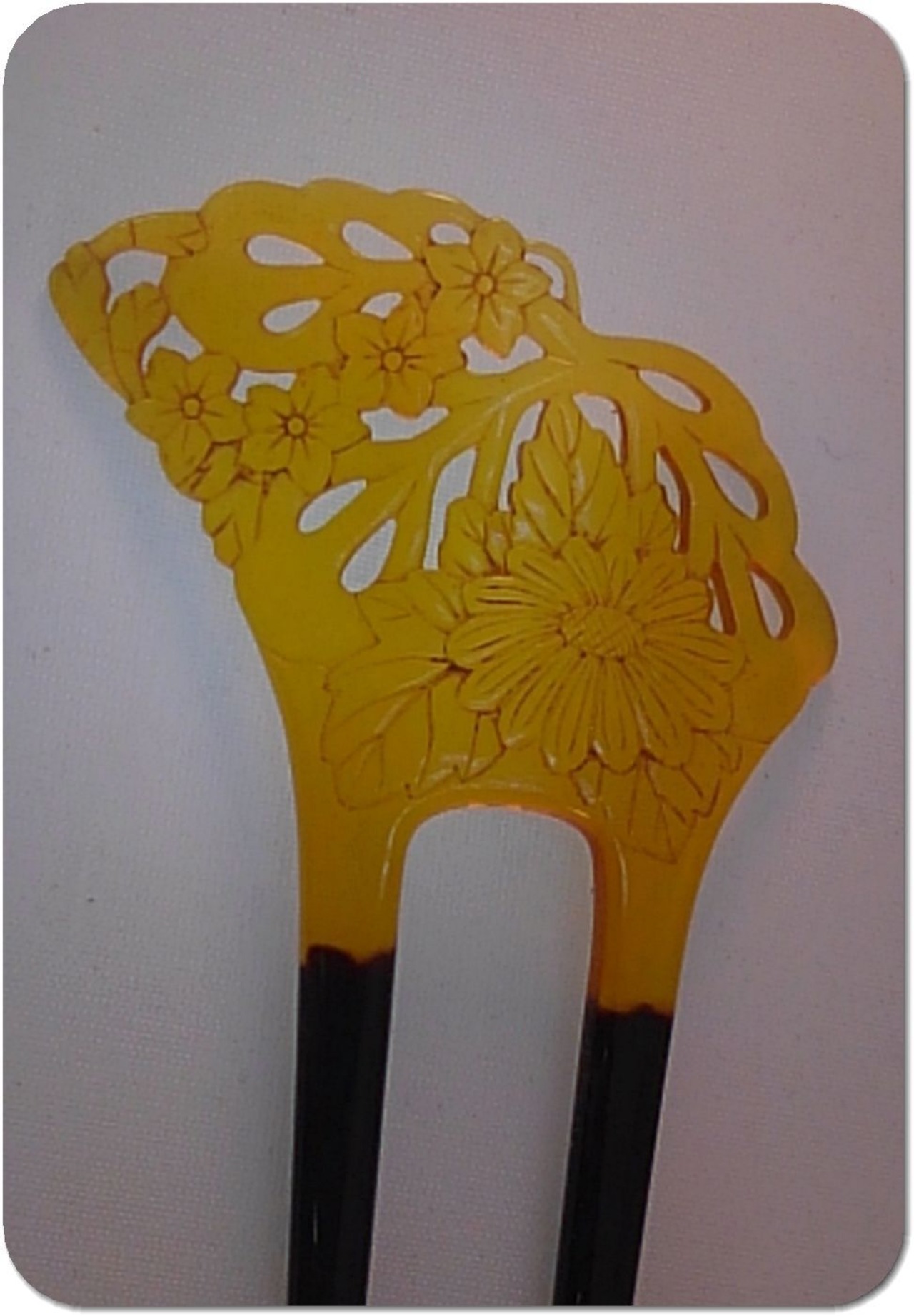 かんざしのデザインでオーソドックスなイチョウの葉をモチーフに菊と桔梗の透かし彫りを施してあります。