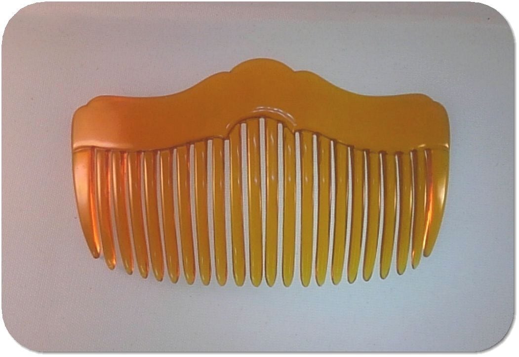 飾りの部分が一段厚くできています。色むらがないきれいなあめ色の櫛です。